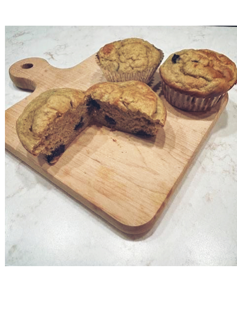 - In a large bowl combine the eggs, Greek yogurt, vanilla extract, and honey. Whisk well until all combined then fold in the dry ingredients. Fold in the mashed bananas and mix well. Add the chocolate chips and stir.